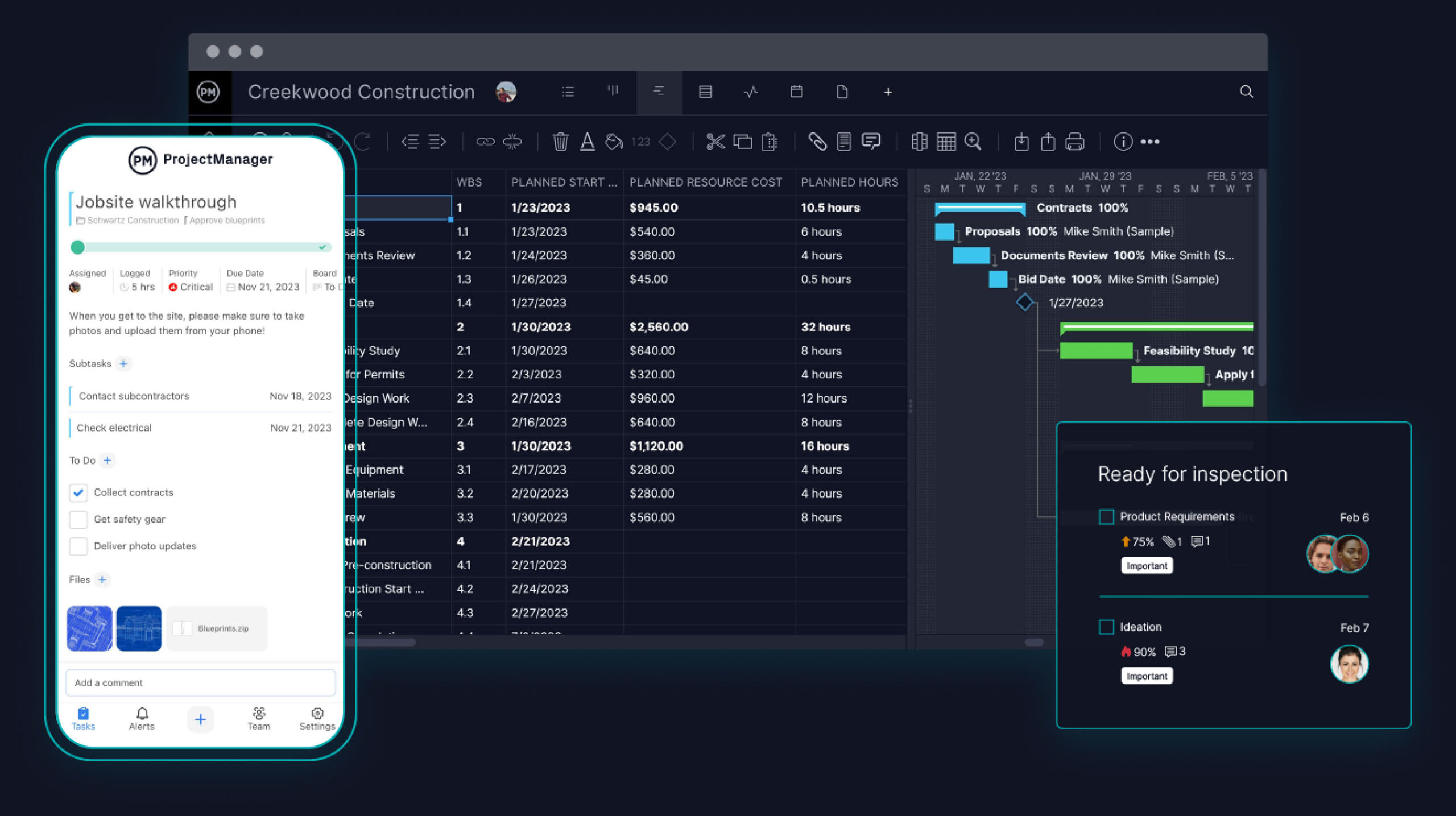 ProjectManager屡获殊荣的项目管理系统将强大的项目雷竞技的客服电话计划和调度功能与团队协作工具结合在一起。用看板计划小项目,或者在交互式甘特图上计划长期项目。通过简单的拖放安排调整到期日期。ProjectManager将项目计划提升到一个全新的水平。